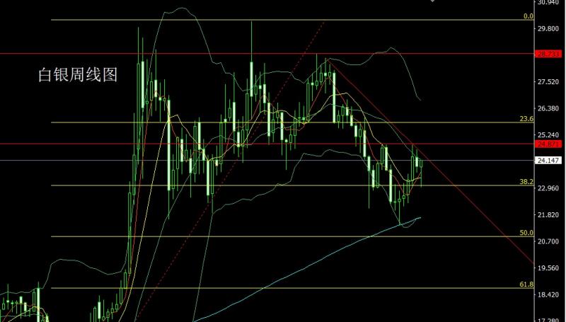上周白银市场周初开盘在23.88的位置后行情先拉升24.093的位置后行情快速回落,周线最低给到了22.997的位置后行情强势拉升,周线最高触及到了24.155的位置后行情整理,周线最终收线在了24.147的位置后,周线以一根下影线极长的锤头形态收线,而这样的形态收尾后,本周先低多,点位上,今日的行情23.9多止损23.7,目标看24.15和24.4-24.6压力