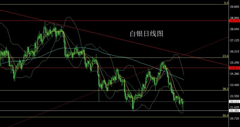 昨日白银市场早盘开盘在21.928的位置后行情先拉升给出22.063的位置后行情回落,日线最低给到了21.386的位置后行情超跌反弹,日线最高触及到了22.115的位置后行情整理,日线最终收线在了22.06的位置后行情以一根下影线极长的锤头形态收线,而这样的形态收尾后,今日的行情低多,点位上,上方24.9的空和24.75的空止损跟进在24.3持有,今日21.8多止损21.6,目标看22.2和22.5压力