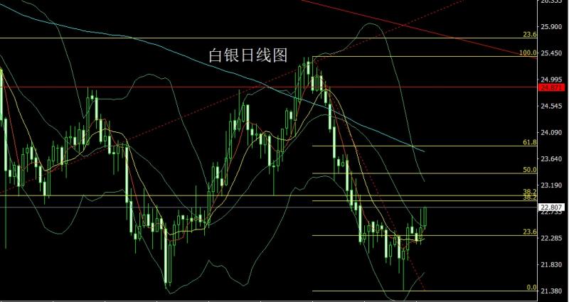 昨日白银市场早盘开盘在22.493的位置后行情小幅回踩22.423的位置后行情震荡拉升,日线最高触及到了22.828的位置后行情整理日线最终收线在了22.806的位置后行情以一根下影线较长的大阳线收线,而这样的形态收尾后,今日的行情低多,点位上,上方24.9的空和24.75的空止损跟进在24.3持有,今日22.6多止损22.45,目标看22.85和23压力