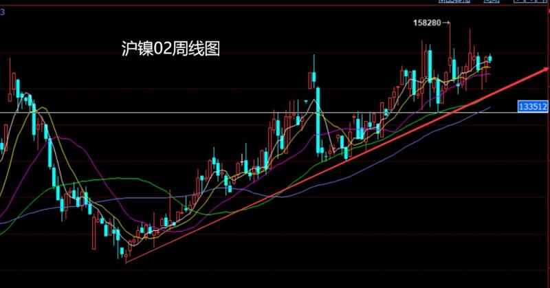 沪镍02市场上周开盘在145759的位置后行情先回落给出141859的位置后行情强势拉升,周线最高触及到了149660的位置后行情整理,周线最终收线在了147588的位置后行情以一根下影线很长的锤头形态收线,而这样的形态收尾后,本周低多,点位上,本周144500多止损143700,目标看149660.破位看150500和151000.