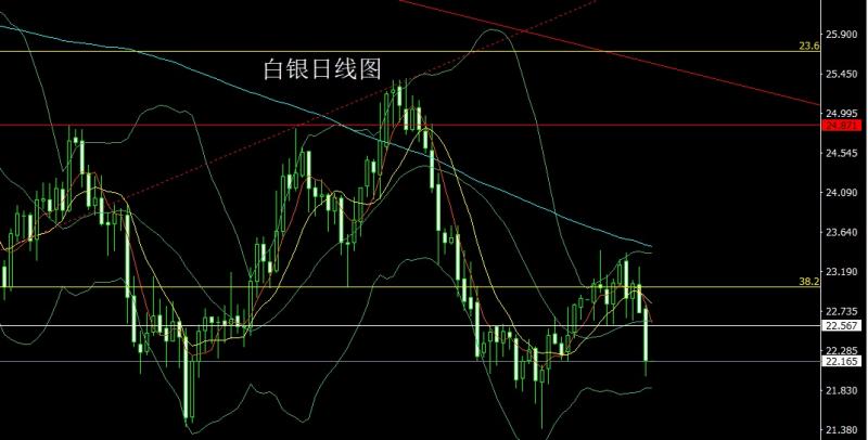 昨日白银市场早盘开盘在22.768的位置后行情小幅拉升给出22.821的位置后行情快速回落,日线最低给到了21.995的位置后行情整理,日线最终收线在了22.177的位置后行情以一根下影线很长的大阴线收线,而这样的形态收尾后,今日的行情依旧空,点位上,今日22.45空止损22.65,下方目标看21.995,跌破看21.85和21.6-21.4.