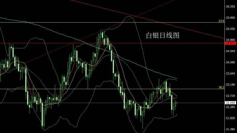 昨日白银市场早盘开盘在22.323的位置后行情先拉升给出22.411的位置后行情快速回落,日线最低给到了22.177的位置后行情拉升,日线最高触及到了22.515的位置后行情整理,日线最终收线在了22.461的位置后行情以一根下影线长于上影线的中阳线收线,而这样的形态收尾后,今日的行情22.3多止损22.15目标看22.55和22.7离场反手空。