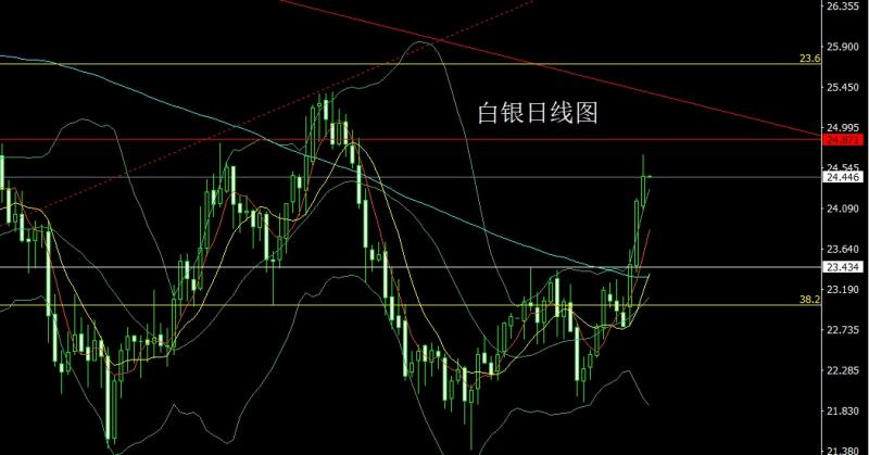 白银:今日的行情24.5空止损26下方目标看24,跌破看23.6和23.3.