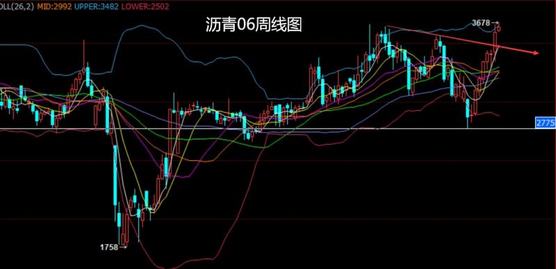 上周沥青06市场周初开盘在3428的位置后行情回踩3339的位置后行情强势拉升,周线最高触及到了3678的位置后行情整理,周线最终收线在了3633的位置后行情以一根下影线长于上影线的大阳线收线,而这样的形态收尾后,本周3660短空止损3685下方目标看3600和3550离场反手直接多。
