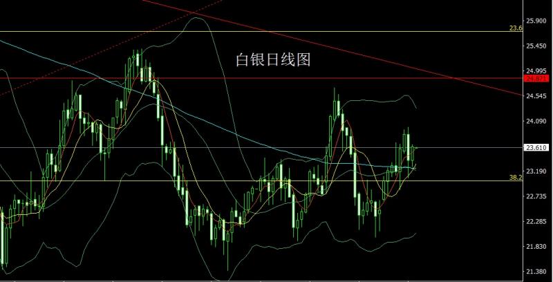 白银:今日的行情如果先回落23.4短多,止损23.25,目标看23.7和23.9离场反手直接空。止损24.15,目标不放不损持有