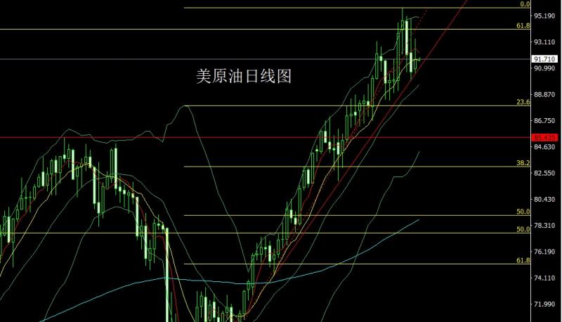 昨日美原油市场早盘开盘在90.897的位置后行情先回落给出90.578的位置后行情快速拉升,日线最高触及到了93.337的位置后行情大区间波动,日线最终收线在了91.683的位置后,日线以一根上影线很长的倒锤头形态收线,而这样的形态收尾后,今日的行情92.8-9空止损93.4,下方目标看91.6和90.55.