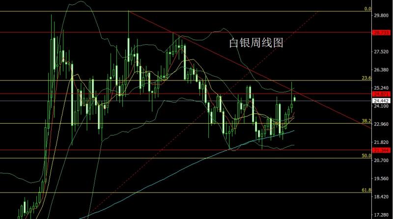 上周黄金市场周初开盘在1900.5的位置后行情先回落给出1886.8的位置后行情震荡上行,到周四行情受到地缘避险局势影响强势拉升,破位1921压力后行情最高触及到了1974.6的位置后行情快速回落,周线最低给到了1877.5的位置后行情超跌整理,周线最终收线在了1888.3的位置后,周线以一根上影线极长的倒锤头形态收线,而这样的形态在技术上是有回落压力的,但基本面的变动将决定行情何时下行,点位上,早盘高开后行情已经洗牌,今日1921尝试空止损1926下方目标看1904和1898,跌破看1894附近离场准备多。