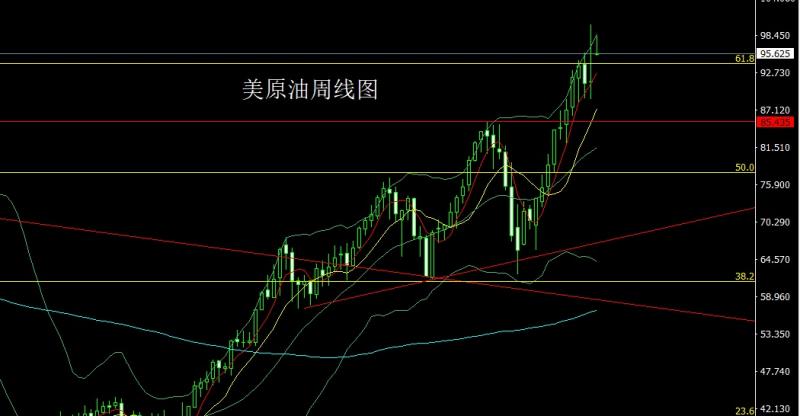美原油市场上周开盘在91.415的位置后行情先回落,周线最低给到了88.817的位置后行情震荡上行,到周四避险情绪刺激下行情最高触及到了100.011的位置后行情冲高回落,周线最终收线在了91.335的位置后行情以一根上影线极长的射击之星形态收线,而这样的形态收尾后,一切方向还是要看俄乌局势的演变,点位上,早盘给出97.6空止损98.2下方目标看95.45和94.6-94.1这个区间离场准备做区间多单。