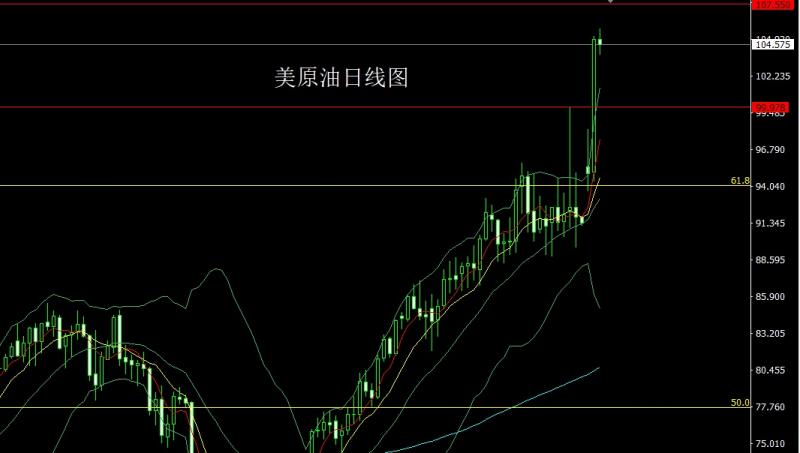 昨日美原油市场早盘开盘在95.114的位置后行情回踩94.411的位置后行情受到避险消息刺激展开拉升过程,盘中破位前日高点后行情急速上行,最高触及到了105.219的位置后行情整理,日线最终收线在了104.956的位置后行情以一根下影线很长的大阳线收线,而这样的形态收尾后,今日的行情低多,点位上,今日101.5多止损100.9目标看105.2和106-107.
