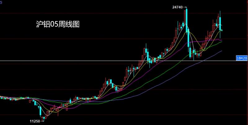 沪铝市场上周开盘在23542的位置后行情小幅拉伸给出24280的位置后行情强势回落,周线最低给到了21070的位置后行情整理,周线最终收线在了21945的位置后行情以一根下影线很长的大阴线收线而这样的形态收尾后,周线出现获利了结形态,下周的行情22650空止损23000下方目标看21000,跌破看20600和20000.