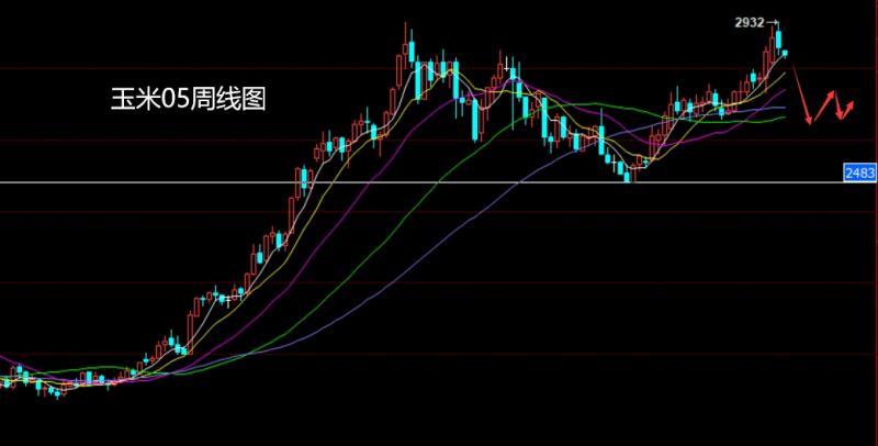 玉米05市场上周高开在2906的位置后行情先拉升给出周线高点2932的位置后行情快速回落,周线最低给到了2827的位置后行情整理,周线最终收线在了2840的位置后行情以一根上影线很长的大阴线收线而这样的形态收尾后,下周的行情有回落技术需求,点位上,周初2860空止损2885下方目标看2825,跌破看2790和2750.