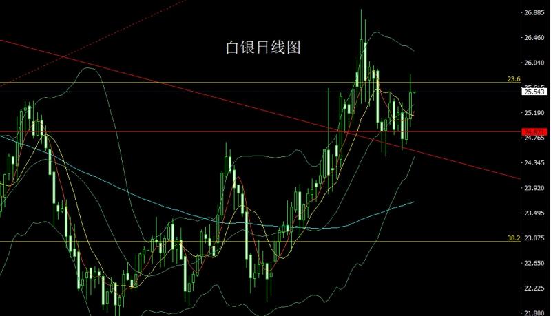 昨日白银市场早盘开盘在25.083的位置后行情回踩24.953的位置后行情强势拉升,日线最高触及到了25.84的位置后行情整理,日线最终收线在了25.525的位置后行情以一根上影线长于下影线的大阳线收线而这样的形态收尾后,今日的行情延续多,点位上,今日的行情早盘如果先拉升给出25.7空止损25.9,下方目标看25.4和25.25附近离场准备多。