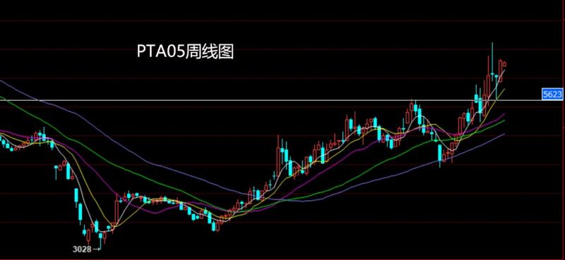 上周PTA05市场周初低开在5949的位置后行情回踩5923的位置后行情拉升,周线最高触及到了6336的位置后行情整理,周线最终收线在了6262的位置后行情以一根上影线很长的大阳线收线,而这样的形态收尾后,本周6200多止损6150,目标看6336.破位看6385和6435.
