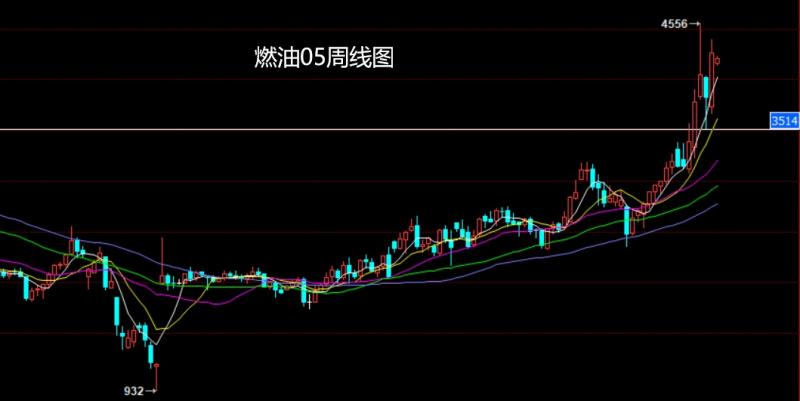 燃油05市场上周受到外围市场影响周初低开在3739的位置后行情回踩3667的位置后行情强势拉升,周线最高触及到了4396的位置后行情整理,周线最终收线在了4213的位置后行情以一根上影线很长的大阳线收线而这样的形态收尾后,本周4100多止损4050,目标看4250和5396.破位看看4450和4510-4556压力.