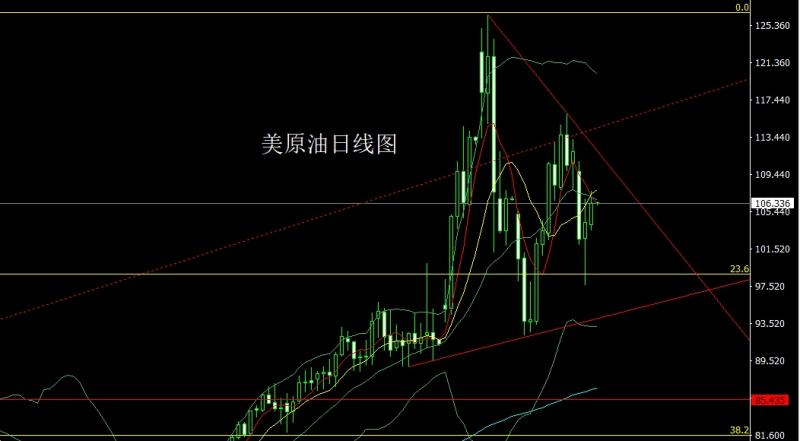 昨日美原油市场早盘开盘在104.072的位置后行情回踩103.508的位置后行情震荡拉升,日线最高触及到了107.679的位置后行情整理,日线最终收线在了106.38的位置后行情以一根上影线稍长于下影线的中阳线收线,而这样的形态收尾后,今日的行情早盘先拉升给出107.4空止损108下方目标看105.5和104.8