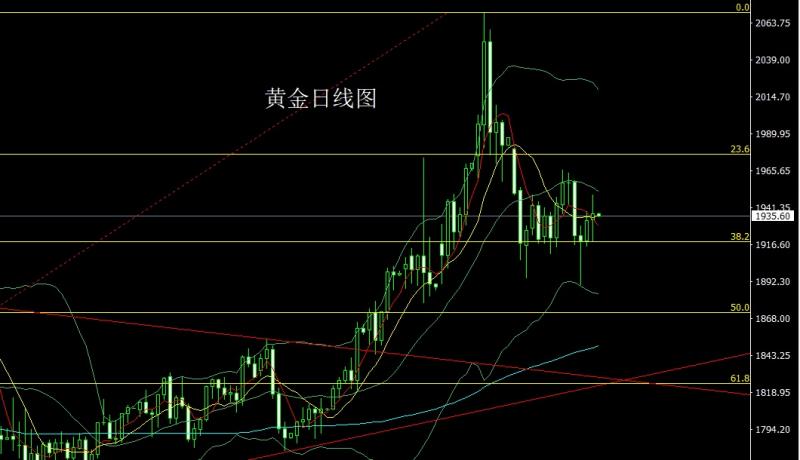 昨日黄金市场早盘开盘在1933的位置后行情先回落,日线最低给到了1918.8的位置后行情拉升,日线最高触及到了1949.9的位置后行情冲高回落,日线最终收线在了1937.1的位置后行情以一根下影线稍长于上影线的长脚十字星形态收线,而这样的形态收尾后,今日的行情反弹后先空,点位上,上方2020的空和2006.6的空止损跟进在1980持有,今日的行情1945空止损1951,下方目标看1932和1923-1918.