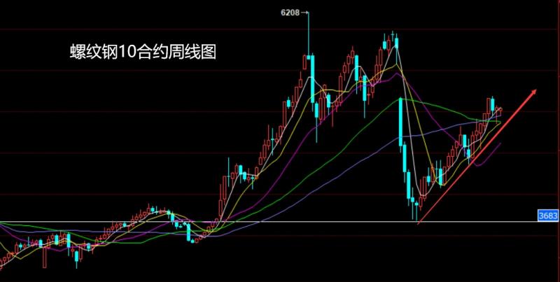 螺纹钢10合约上周开盘在5022的位置后行情先回落,周线最低给到了4860的位置后行情强势拉升,周线最高触及到了5081的位置后行情整理,周线最终收线在了5038的位置后行情以一根下影线极长的启明星形态收线,而这样的形态收尾后,本周的行情先多,点位上,本周4935多止损4920,目标看5035和5081.破位看5160-5200压力。
