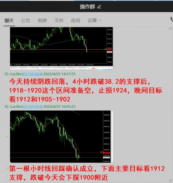 昨日客户群操作,1918-1920空,晚间1904空1894减仓离场