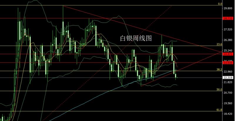 上周白银市场周初开盘在22.703的位置后行情先回落给出22.088的位置后行情强势拉升,周线最高触及到了23.277的位置后行情冲高回落,周线再次给出低点后行情整理,周线最终收线在了22.32的位置后行情以一根上影线很长的中阴线收线,而这样的形态收尾后,本周22.5空止损22.7,下方目标看22.05,跌破看21.8和21.5.