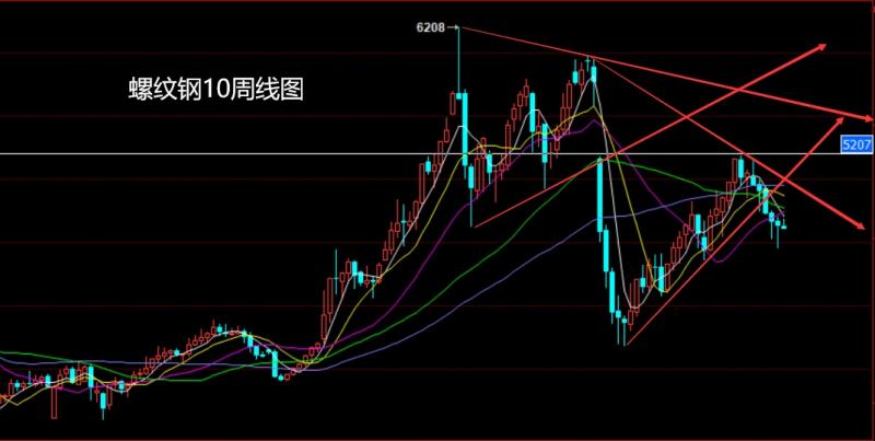 上周螺纹钢周初开盘在4668的位置后行情小幅拉升给出4712的位置后行情快速回落,周线最低给到了4463的位置后行情整理,周线最终收线在了4615的位置后行情以一根下影线几次的锤头形态收线,而这样的形态收尾后,本周4665空止损4685下方目标看4580和4530.