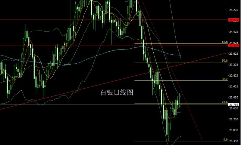 昨日白银市场区间整理,早盘开盘在21.752的位置后行情直接拉升,日线最高触及到了22.184的位置后行情冲高回落,日线最低给到了21.657的位置后行情整理,日线最终收线在了21.776的位置后行情以一根上影线极长的射击之星形态收线,而这样的形态收尾后,日线出现回落信号,点位上,昨日22的空减仓后止损跟进在22.15持有,今日的行情22.95空止损22.15.下方目标看21.6和21.4-21.25.