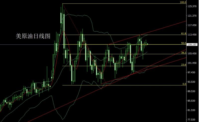 昨日美原油市场早盘开盘在109.795的位置后行情先拉升,日线最高触及到了111.3的位置后行情快速回落,日线最低给到了108.528的位置后行情整理,日线最终收线在了110.018的位置后行情以一根上下影线很长的长脚十字星形态收线,而这样的形态收尾后,日线需要整理,点位上,今日110.6空止损111.2下方目标看108.5和107.8-107.