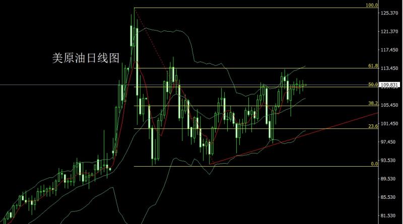 昨日美原油市场早盘开盘在109.491的位置后行情先拉升给出110.828的位置后行情展开回落过程,日线最低给到了108.446的位置后行情整理拉升,日线最终收线在了109.919的位置后行情以一根下影线稍长于上影线的纺锤形态收尾,而这样的形态收尾后,日线进入盘整形态,点位上,今日的行情110.7空止损111.2,下方目标看109.2和108.5.
