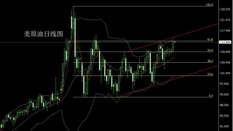 昨日美原油市场早盘开盘在109.724的位置后行情回踩109.228的位置后行情快速拉升,日线最高触及到了113.81的位置后行情整理,日线最终收线在了113.226的位置后行情以一根上下影线基本等长的大阳线收线,而这样的形态收尾后,今日的行情如果先拉升给出114.8空止损115.3下方目标看113.5和112.5-112附近离场