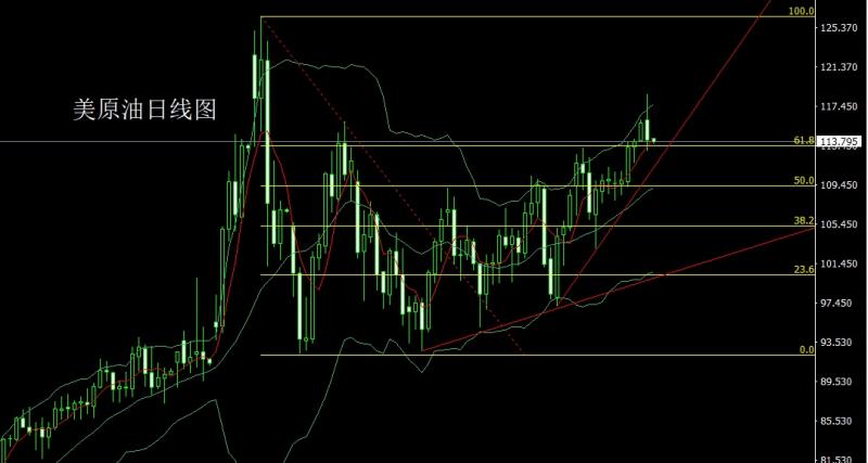 昨日美原油市场早盘开盘在116.052的位置后行情先拉升,日线最高触及到了118.731的位置后行情在美盘受到欧佩克成员国考虑将俄罗斯豁免在石油生产协议之外,此举可能为沙特阿拉伯、阿联酋生产更多石油的借口,这样的增产预期让原油价格出现冲高回落过程,日线最低给到了112.915的位置后行情整理,日线最终收线在了113.993的位置后行情以一根上影线长于下影线的大阴线收线,而这样的形态收尾后,日线出现冲高回落信号,今日的行情115.35空止损115.9,下方目标看112.9,跌破看112和111-110.2.