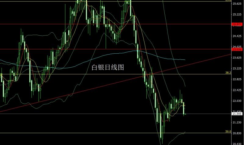 昨日白银市场早盘在21.97的位置后行情小幅拉升给出21.988的位置后行情展开回落,日线最低给到了21.468的位置后行情强势拉升,随后尾盘震荡回落,日线最终收线在了21.534的位置后行情以一根下影线较长的大阴线收线,而这样的形态收尾后,今日的行情21.7空止损21.9,下方目标看21.45,跌破看21.2和21-20.9支撑。