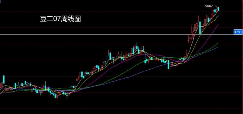 上周豆二07市场周初开盘在5568的位置后行情先回落给出低点5452的位置后行情强势拉升,周线最高触及到了5667的位置后行情尾盘回落,周线最终收线在了5528的位置后行情以一根上下影线很长的大阴线收线,而这样的形态收尾后,本周5595空止损5625,下方目标看5450和5400和5350-5300.