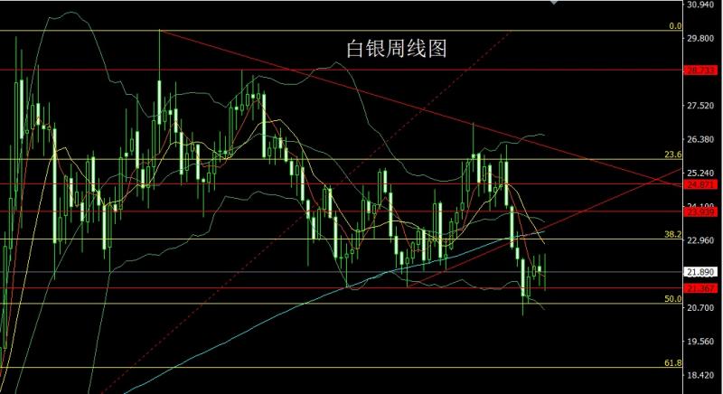 白银市场上周区间波动,周初开盘在21.893的位置后行情先拉升,周线最高触及到了22.51的位置后行情冲高回落,到周五行情最低给到了21.248的位置后行情尾盘拉升,周线最终收线在了21.89的位置后,周线以一根长脚十字星形态收线,而这样的形态收尾后,本周延续区间,点位上,今日21.65多止损21.45,目标看22和22.3-22.5压力