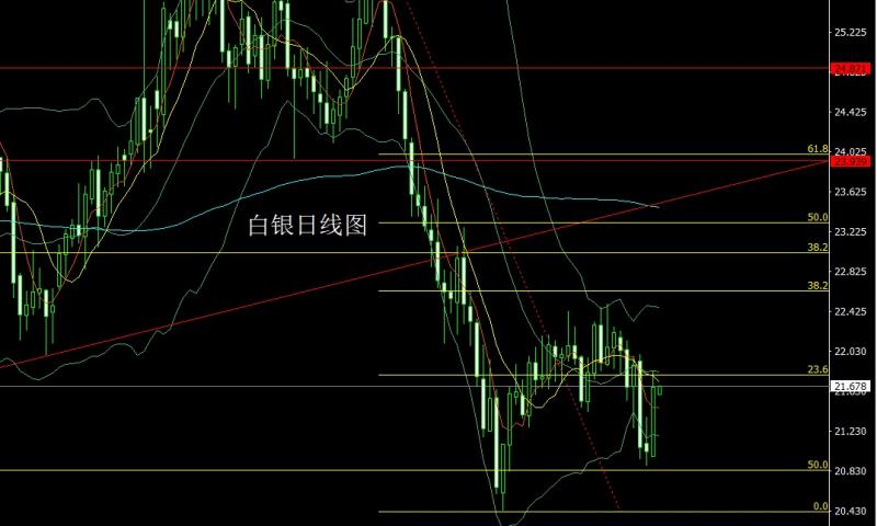 昨日白银市场低开在20.972的位置后行情直接拉升,日线最高触及到了21.838的位置后行情整理,日线最终收线在了21.668的位置后行情以遗恨上影线很长的大阳线收线,而这样的形态收尾后,今日的行情21.35多止损21.15,目标看21.8和22-22.15.
