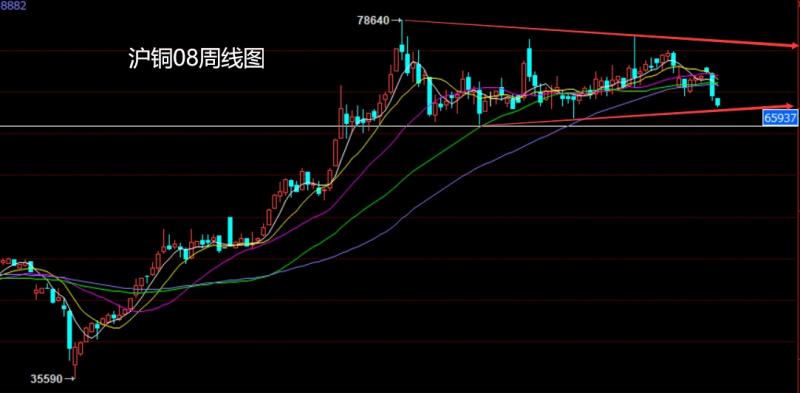沪铜08市场上周低开在72182的位置后行情回补缺口给出72350的位置后行情回落,周线最低给到了68270的位置后行情得到本轮三角整理支撑整理,周线最终收线在了68400的位置后行情以一根略带影线的饱和大阴线收线,而这样的形态收尾后,上周72150的空减仓后止损跟进在72000.本周68950空止损69150下方目标看68400和28270.跌破看67900和67450和67000.