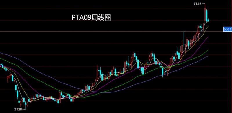 PTA09市场上周低开在7433的位置后行情回补缺口给出7500的位置后行情展开回落,周线最低给到了6900的位置后行情整理,周线最终收线在了6974的位置后行情以一根略带影线的饱和大阴线收线而这样的形态收尾后,本周7100空止损71200下方目标看6900,跌破看6800和6650.