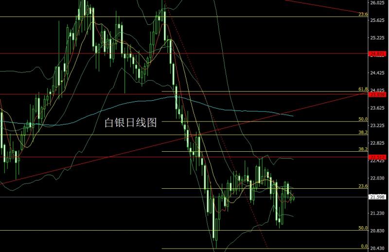 昨日白银市场早盘低开在21.523的位置后行情先拉升给出21.752的位置后行情冲高回落,日线最低给到了21.458的位置后行情整理,日线最终收线在了21.598的位置后行情以一根上影线很长的倒锤头形态收线,而这样的形态收尾后,今日的行情21.75空止损21.9下方目标看21.45和21.2-21.1.