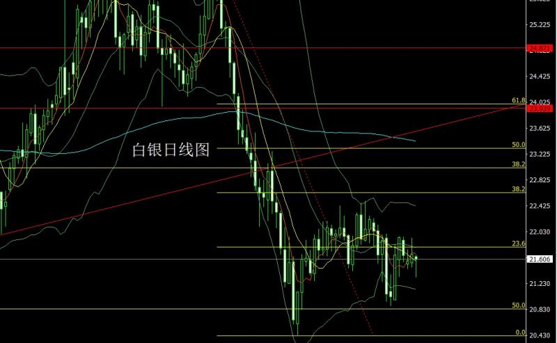 昨日白银市场早盘开盘在21.548的位置后行情回踩21.479的位置后行情拉升,日线最高触及到了21.931的位置后行情冲高回落,日线最终收线在了21.677的位置后行情以一根上影线很长的倒锤头形态收线,而这样的形态收尾后,今日的行情早盘探底拉升后,今日的行情21.85空止损22.05,下方目标看21.2和21-20.7.