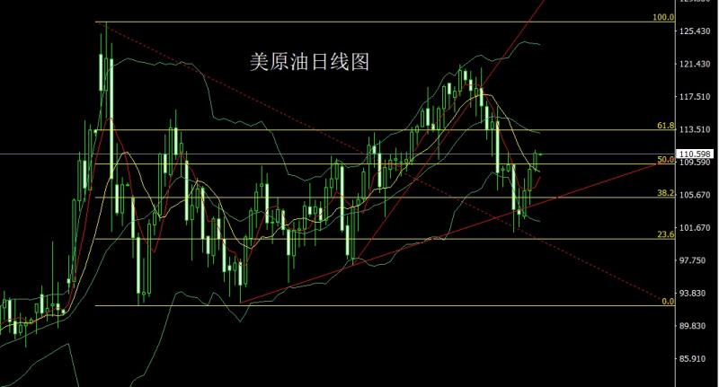 美原油市场早盘开盘在108.751的位置后行情回踩108.425的位置后行情拉升给出110.441的位置后行情承压回落,二次给出早盘低点后行情强势拉升,日线最高触及到了111.068的位置后行情整理日线最终收线在了110.631的位置后行情以一根上下影线等长的中阳线收线,而这样的形态收尾后,今日的行情109.4多止损108.9,目标看111.1,破位看112和113压力离场,今日给出113.2空。