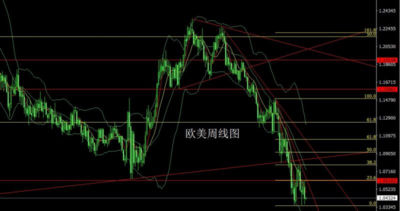 欧美市场上周开盘在1.05401的位置后行情强势拉升,周线最高触及到了1.06150的位置后行情受到本轮下行斐波那契的第一压力影响强势回落,周线最低给到了1.03633的位置后行情超跌反弹,周线最终收线在了1.04265的位置后行情以一根上影线稍长于下影线的大阴线,而这样的形态收尾后,本周1.04700空止损1.04950,下方目标看1.04000和1.03600.