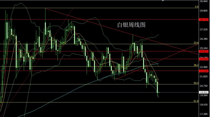 白银市场上周开盘在21.186的位置后行情先拉升给出21.538的位置后行情快速回落,周线最低给到了19.351的位置后行情整理,周线最终收线在了19.836的位置后行情以一根下影线稍长于上影线的大阴线收线,而这样的形态收尾后,周线有效跌破N字形态低点,本周行情回踩后延续做空,点位上,今日19.65多止损19.45,目标看20.1和20.4压力离场反手直接空。