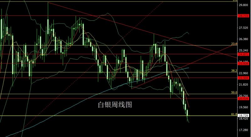 上周白银市场周初开盘在19.271的位置后悔行情小幅拉升给出19.426的位置后行情展开回落,周线最低给到了18.109的位置后行情尾盘拉升,周线最终收线在了18.684的位置后行情以一根下影线很长的大阴线收线,而这样的形态收尾后,今日的行情18.4多止损18.2,目标看18.8和19-19.2压力。