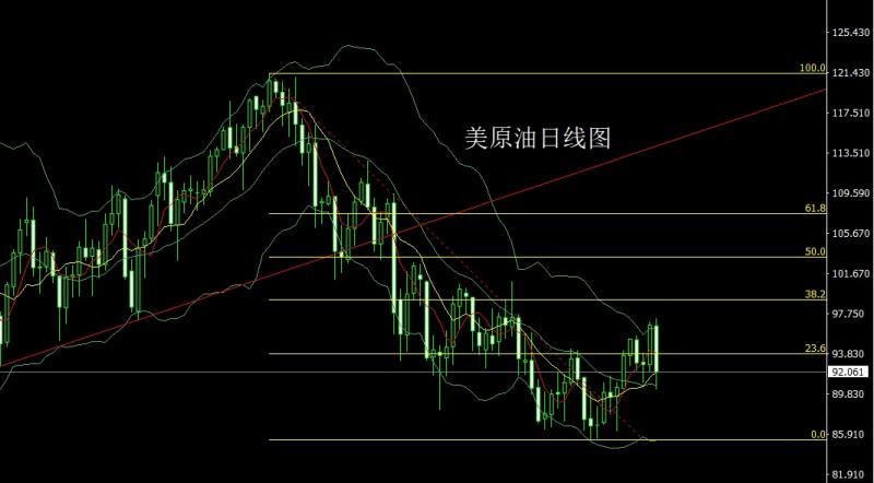 美原油市场昨日受到基本面干扰行情回落,早盘开盘在96.6的位置后行情小幅拉升给出97.286的位置后行情展开回落,日线最低给到了90.216的位置后行情整理,日线最终收线在了92.061的位置后,日线以一根下影线很长的大阴线收线,而这样的形态收尾后,日线单独调整信号,今日的行情93.75空止损94.3,下方目标看90.3和89和88.5.