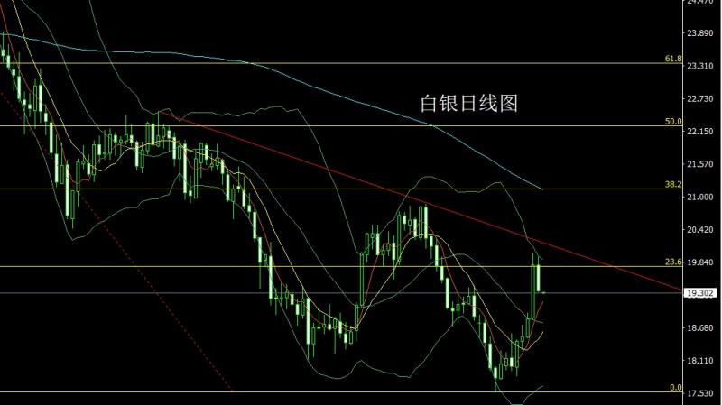 白银市场昨日开盘在19.791的位置后行情先回落给出19.513的位置后行情拉升,日线最高触及到了19.948的位置后行情快速回落,日线最低给到了19.323的位置后行情整理,日线最终收线在了19.331的位置后行情以一根上影线很长的大阴线收线,而这样的形态收尾后,今日的行情19.5空止损19.7,下方目标看19.3,跌破看19.1-19.
