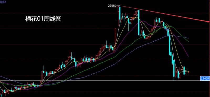 上周棉花01市场区间整理,周初开盘在14601的位置后行情先回落给出14301的位置后行情快速拉升,周线最高出触及到了15022的位置后行情冲高回落,周线最终收线在了14587的位置后行情以一根上影线极长的倒锤头形态收线,而这样的形态收尾后,本周14450多止损14250,目标看15000和15500.