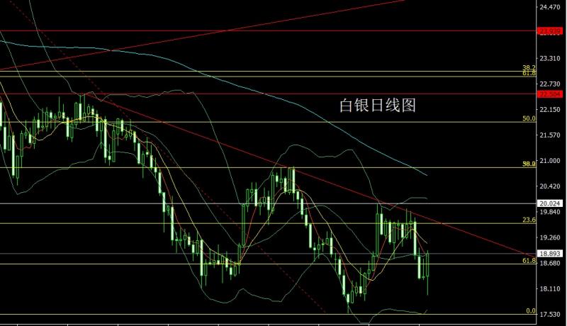昨日白银上次早盘开盘在18.384的位置后行情先回落,日线最低给到了17.954的位置后行情展开拉升过程,日线最高触及到了18.974的位置后行情整理,日线最终收线在了18.89的位置后行情以一根下影线极长的大阳线收线,而这样的形态收尾后,今日的行情回踩延续多点位上,18.6多止损18.4,目标看19和19.25和19.5.
