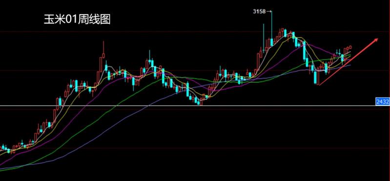 上周玉米01市场上周开盘在2866的位置后行情回落,周线最低给到了2829的位置后行情拉升,周线最高触及到了2893的位置后行情整理,周线最终收线在了2889的位置后行情以一根下影线很长的锤头形态收线,而这样的形态收尾后,本周2875多止损2845,目标看2900和2950。