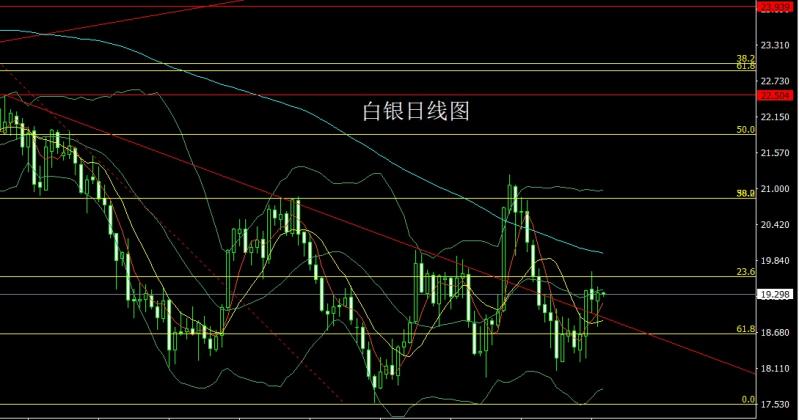 昨日白银市场早盘开盘在19.195的位置后行情先拉升给出19.374的位置后行情回落,日线最低给到了18.773的位置后行情强势拉升,日线最高触及到了19.42的位置后行情整理,日线最终收线在了19.32的位置后行情以一根下影线极长的锤头形态收线,而这样的形态收尾后,今日的行情延续多,点位上,今日的行情19.05多止损18.85,目标看19.45.破位看19.7和19.9.