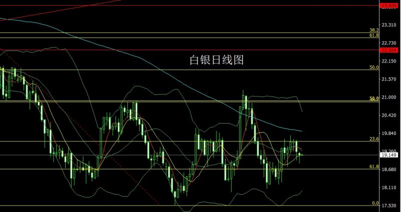 昨日白银市场早盘开盘在19.202的位置后行情小幅拉升给出19.246的位置后行情回落日线最低给到了18.882的位置后行情尾盘快速拉升,日线最终收线在了19.141的位置后日线以一根下影线很长的锤头形态收尾,而这样的形态收尾后,今日的行情如果先拉升给出19.3尝试空,止损19.45下方目标看19和18.85-18.6