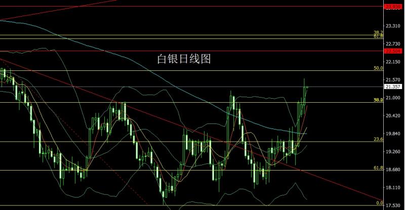 白银:昨日20.45的多止损跟进在20.45持有,今日的行情21多止损20.8,目标看21.65.破位看22-22.3-22.5.