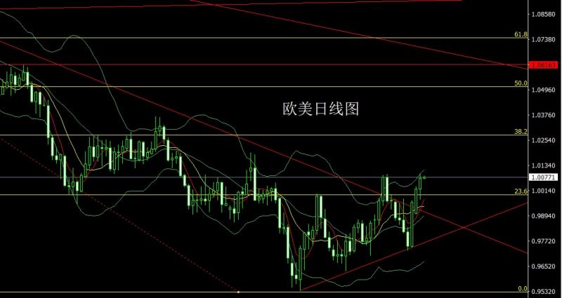 欧美:昨日0.99750的多减仓后止损跟进在0.99900持有,今日的行情1.00300多止损1.00000,目标看1.01000和1.01350和1.01650.
